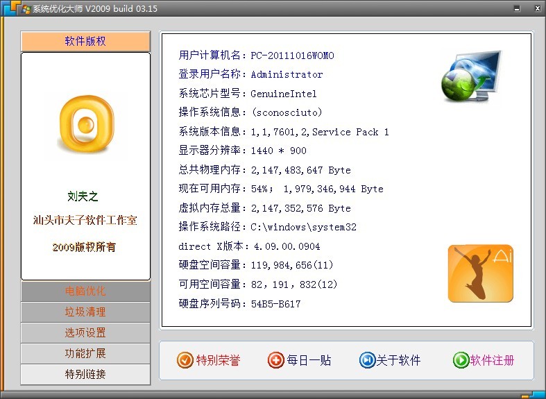系統(tǒng)優(yōu)化大師V2009 Build 03.15綠色特別版|