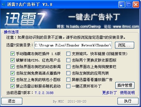 迅雷7去廣告補丁V3.8 綠色免費版|
