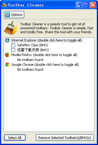 瀏覽器插件清理工具(Toolbar Cleaner)