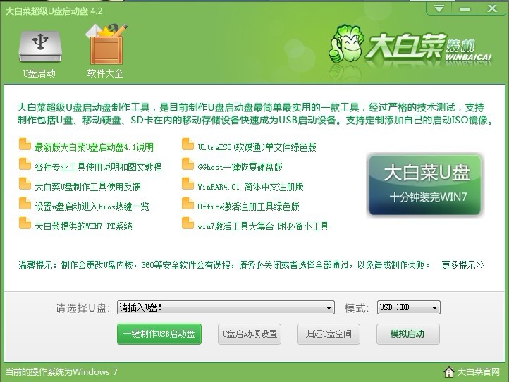 文件: 大白菜超級U盤啟動盤制作工具V4.2.exe
