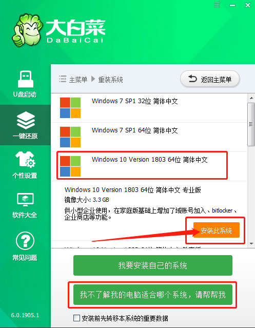 3、然后,在鏡像頁面中,自行選擇想要重裝的系統(tǒng)版本,并點擊【安裝此系統(tǒng)】。假如不太清楚安裝那個系統(tǒng),也可以參考【我不了解我的電腦適合哪個系統(tǒng),請幫幫我】的建議
