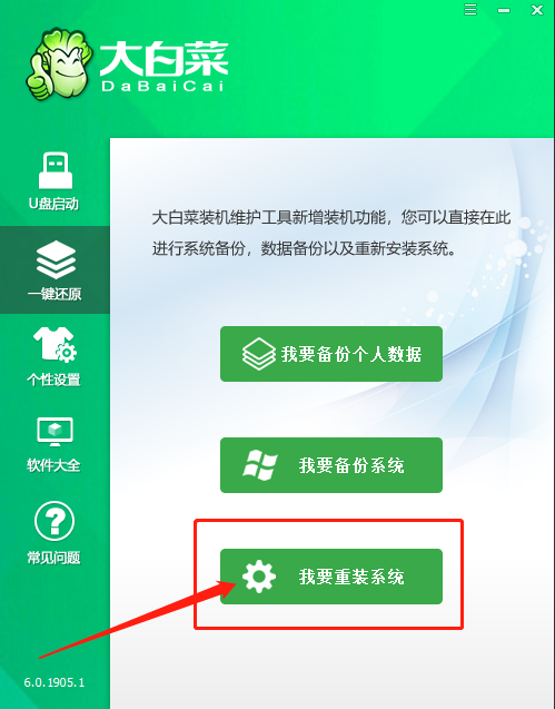 3、進入一鍵還原界面之后,選擇【我要重裝系統(tǒng)】