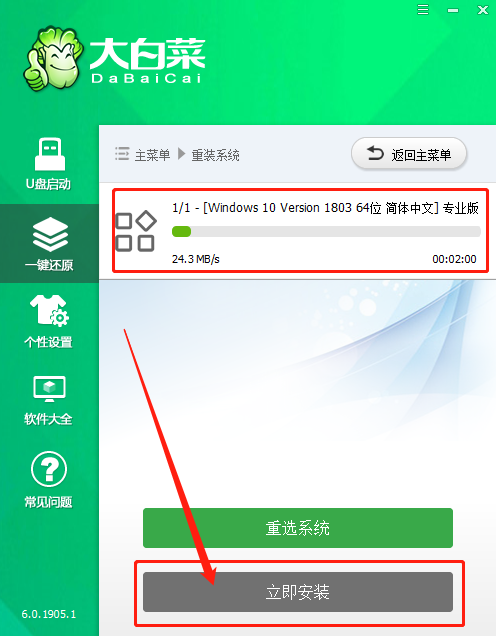 4、隨后,等待鏡像系統(tǒng)下載完畢后,點擊【立即安裝】