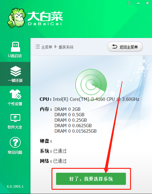 4、隨后,軟件會自動檢測電腦的整體情況。檢測完畢后,點擊【好了,我要選擇系統(tǒng)】