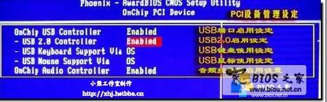 然后 進(jìn)入 OnChip PCI Device(PCI設(shè)備設(shè)定),可以設(shè)置USB參數(shù)。定義分別是: