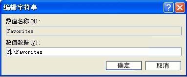 其次在該控制臺(tái)窗口的左側(cè)位置處,用鼠標(biāo)右鍵點(diǎn)選HKEY_CURRENT_USER節(jié)點(diǎn)選項(xiàng),并從目標(biāo)節(jié)點(diǎn)下面依次展開注冊表子項(xiàng)Software\Microsoft\Windows\CurrentVersion\Explorer\Shell Folders,在對應(yīng)Shell Folders子項(xiàng)的右側(cè)顯示區(qū)域中,找到目標(biāo)鍵值Favorites,并用鼠標(biāo)雙擊該鍵值選項(xiàng),打開如圖1所示的設(shè)置對話框;在該對話框的"數(shù)值數(shù)據(jù)"文本框中,輸入U(xiǎn)盤中的收藏夾詳細(xì)路徑,再單擊"確定"按鈕保存好上述設(shè)置操作,最后重新啟動(dòng)一下對應(yīng)系統(tǒng),如此一來Windows系統(tǒng)日后就能自動(dòng)將U盤作為收藏夾來顯示了。