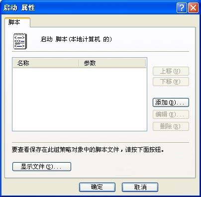 其次在該控制臺(tái)窗口的左側(cè)顯示位置處,依次選中"計(jì)算機(jī)配置"/"Windows設(shè)置"/"腳本"分支選項(xiàng),在對應(yīng)"腳本"分支選項(xiàng)的右側(cè)顯示區(qū)域,用鼠標(biāo)雙擊"啟動(dòng)"選項(xiàng),打開如圖2所示的設(shè)置對話框。