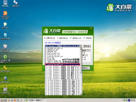 1-1:Win7和Win8微軟原版系統(tǒng)文件為ISO光盤映像文件,我們這里以Win7為例。在映像路徑中選擇Win7光盤映像文件,程序會自動掛載此ISO文件并搜索和列出里面的安裝文件install.wim,點(diǎn)選這個(gè)wim文件程序會列出需要安裝的Windows版本供選擇。