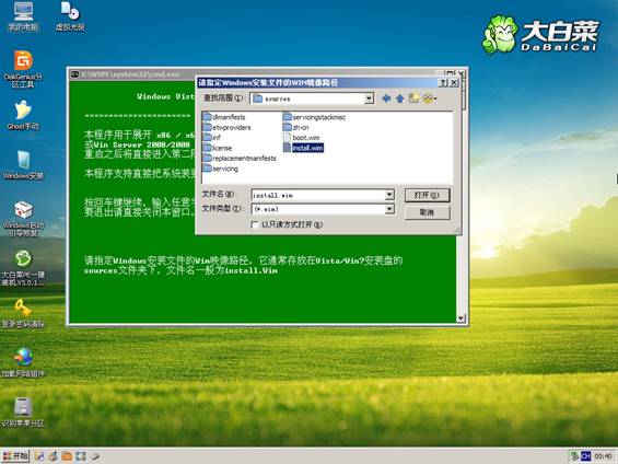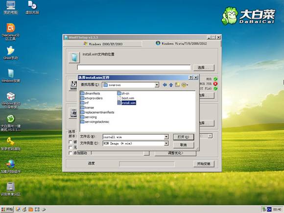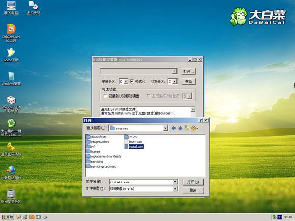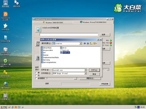 方法2、從Win7安裝盤sources目錄下提取install.wim放入U(xiǎn)盤或硬盤,然后啟動U盤進(jìn)PE,利用NT6安裝工具找到提取自ISO里的install.wim進(jìn)行安裝。