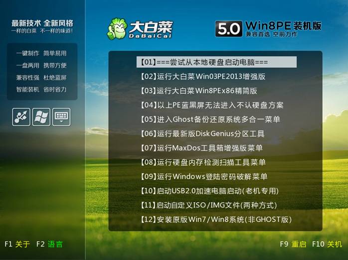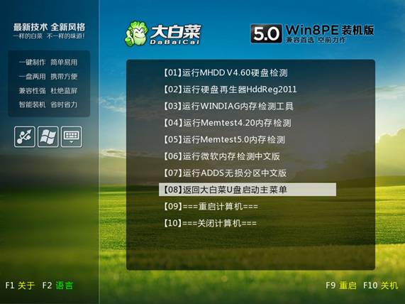 大白菜U盤啟動(dòng)盤制作工具各項(xiàng)工具功能預(yù)覽