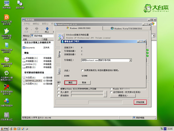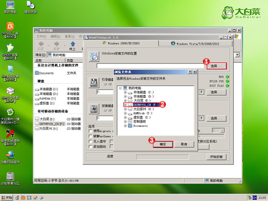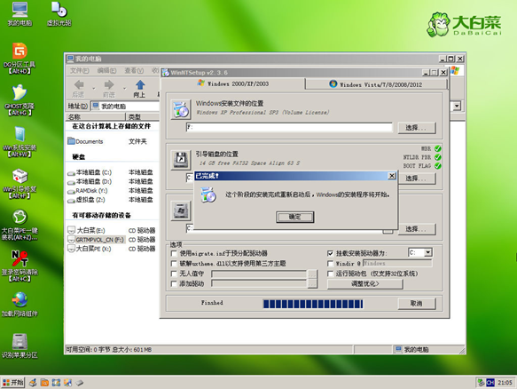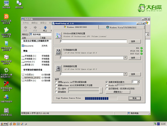 ⑦、大白菜5.1版 安裝原版WinXP教程v5.1
