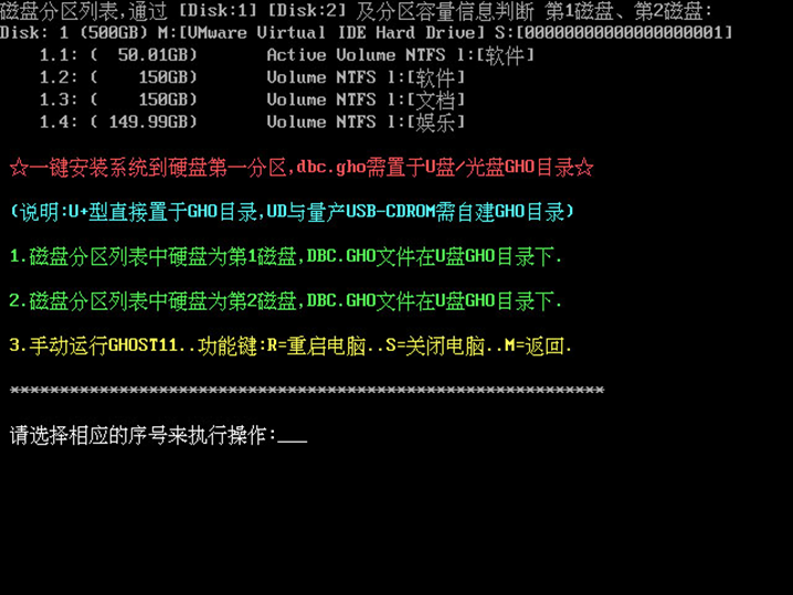 本工具制作完成的啟動U盤,內(nèi)部所集成的PE系統(tǒng)啟動時會自動檢測U盤GHO目錄下的GHO或者ISO鏡像文件名稱,并提示進(jìn)行選擇安裝: