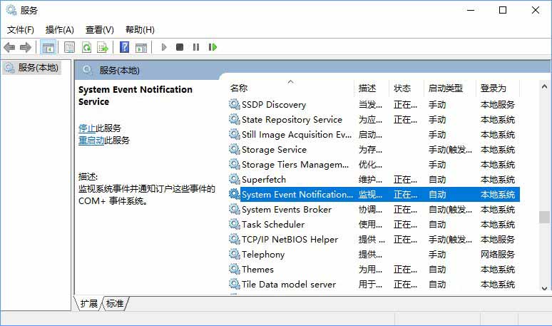 2、找到并雙擊打開 System Event Notification Service,將啟動類型修改為“自動”,點【啟動】-【應(yīng)用】-【確定】即可;