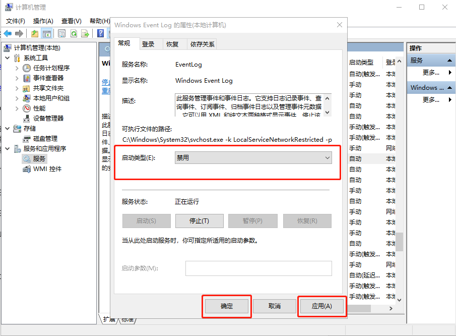 5、在屬性頁面中,選擇“禁用”,點擊“應(yīng)用”并“確定”即可