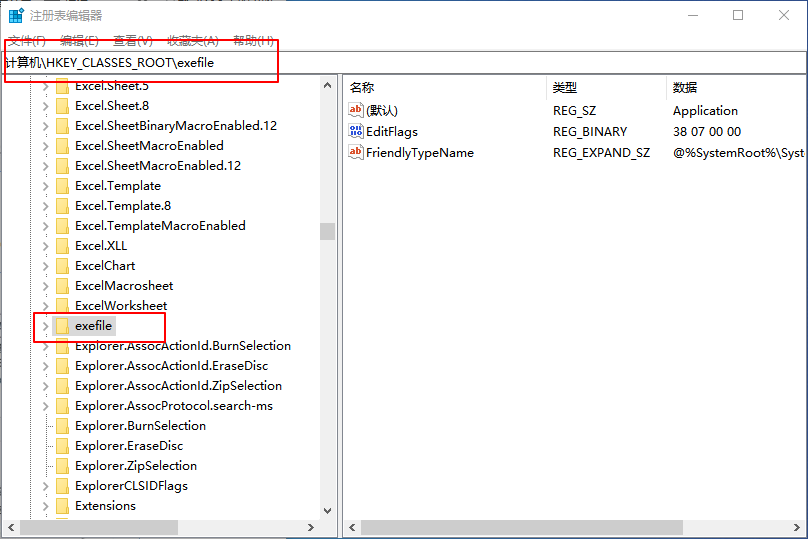 4、由上一步獲取的數(shù)據(jù),推導(dǎo)出以下位置:HKEY_CLASSES_ROOT\exefile;