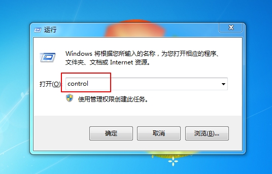 方法二:同時按住“win+R”鍵,打開運行窗口,輸入“control”并回車