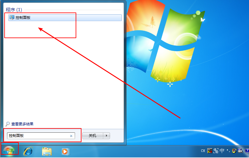 方法三:點擊“開始”菜單,在搜索框中輸入“控制面板”或者“control”,并點擊搜索結果中的控制面板