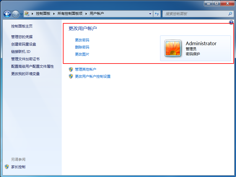 5、 隨后,會自動回到用戶賬戶頁面,我們可以發(fā)現管理員賬戶的開機密碼已經設置成功了