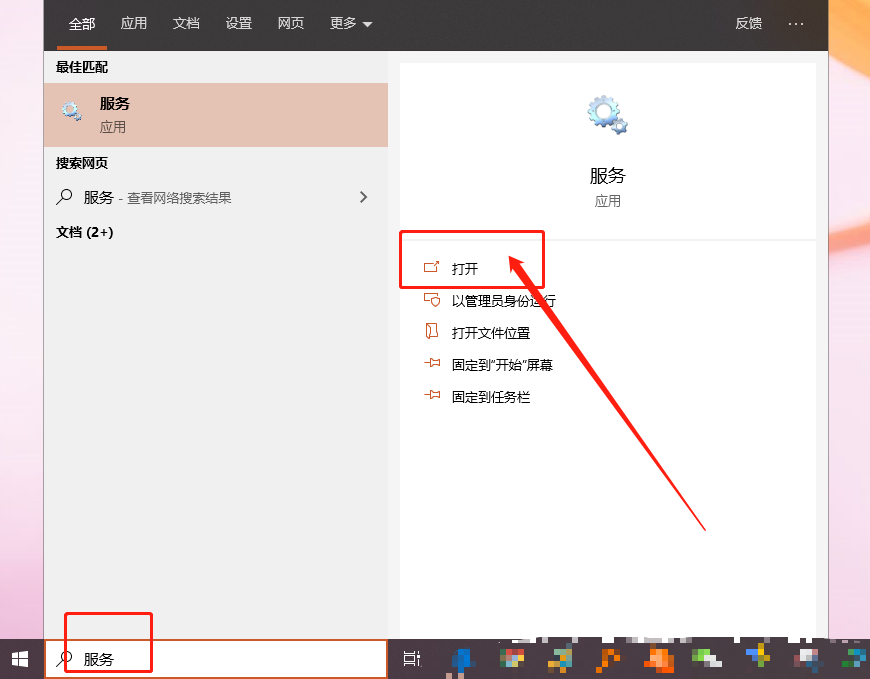 1、 在電腦桌面搜索框中,輸入并打開(kāi)“服務(wù)”