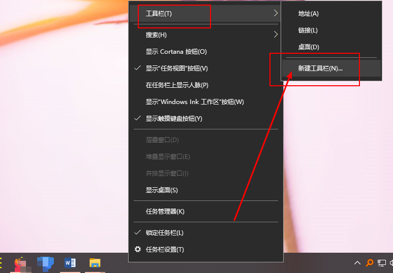 1、 右鍵任務(wù)欄,點(diǎn)擊“工具欄”-“新建工具欄”
