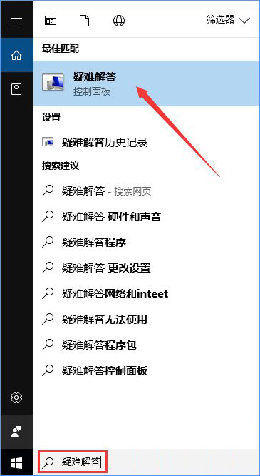 1、在開始菜單中鍵入“疑難解答”,然后選擇“疑難解答”工具。