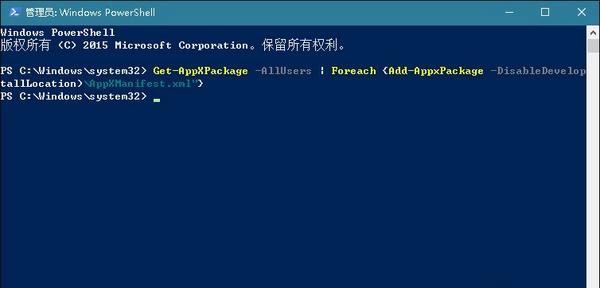 【Get-AppXPackage -AllUsers | Foreach {Add-AppxPackage -DisableDevelopmentMode -Register "$(.InstallLocation)\AppXManifest.xml"}】