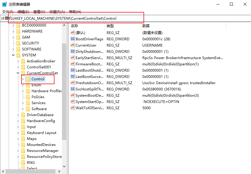 2、按照以下路徑展開(kāi)至:HKEY_LOCAL_MACHINE\SYSTEM\CurrentControlSet\Control