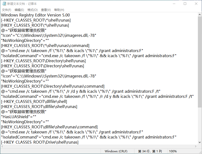 @="cmd.exe /c takeown /f \"%1\" && icacls \"%1\" /grant administrators:F"