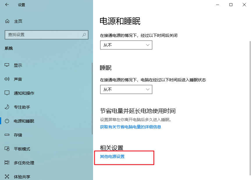 3、然后,繼續(xù)點擊右側(cè)的“其他電源設(shè)置”;