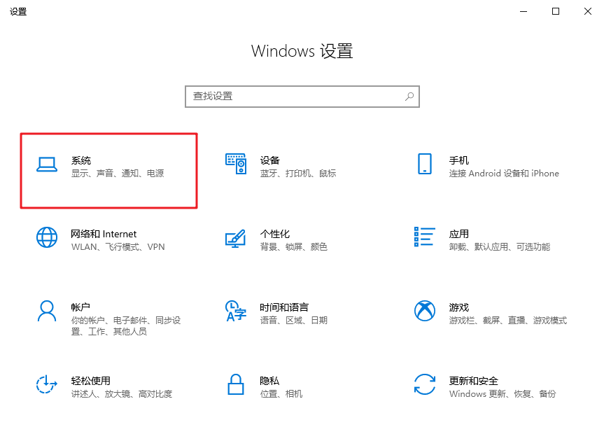 1、同時按住win+i打開Windows設(shè)置頁面,并點擊“系統(tǒng)”;