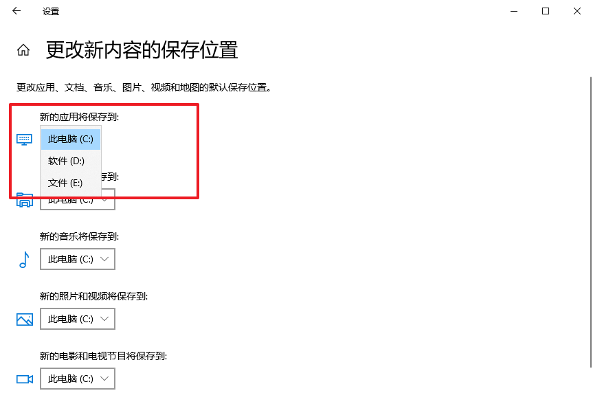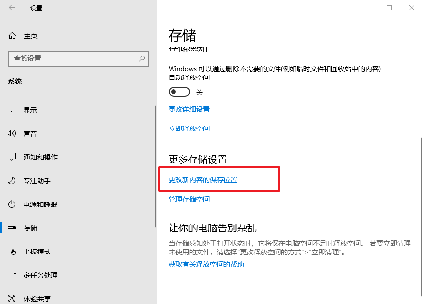 4、 然后,再點擊右側(cè)窗口中的“更改新內(nèi)容的保存位置”選項;