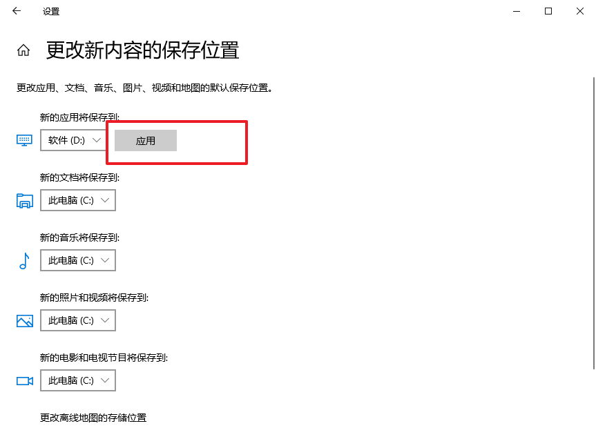 5、 之后,將新的應(yīng)用將保存到調(diào)整到其他文件夾,再按下“應(yīng)用”;