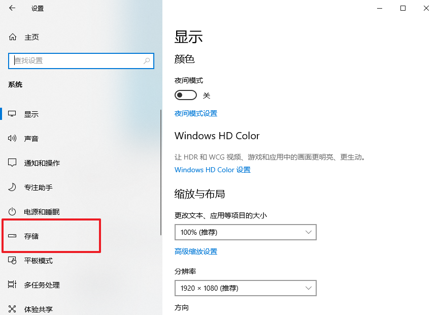 3、 在系統(tǒng)設(shè)置窗口,點擊“存儲”;
