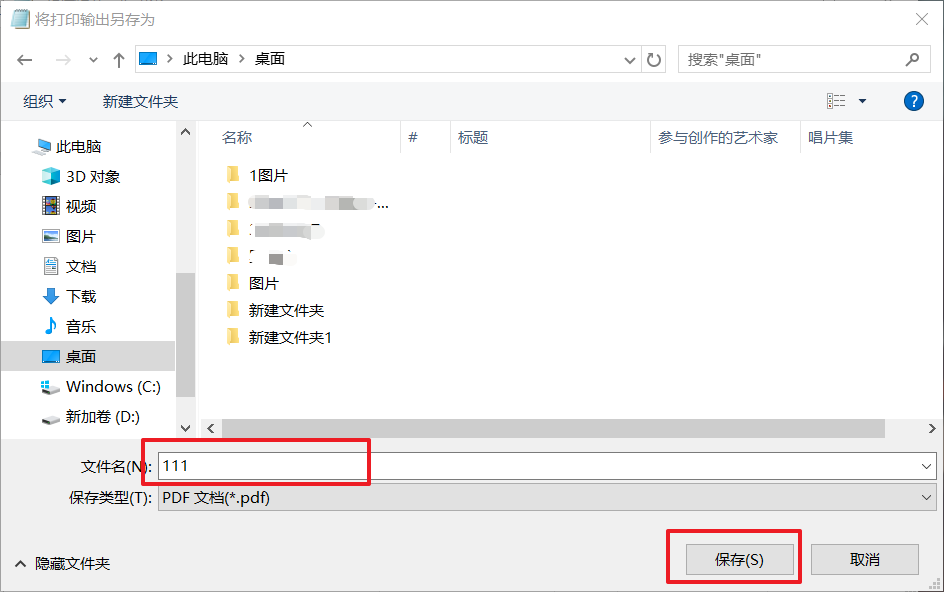 3、在打印輸出另存為對話框,給文件命名并確定保存路徑,最后點擊“保存”按鈕。