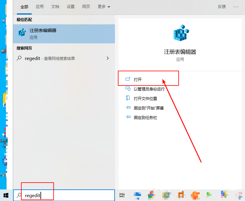 1、在Cortana搜索欄輸入regedit,按回車鍵進(jìn)入注冊表編輯器;