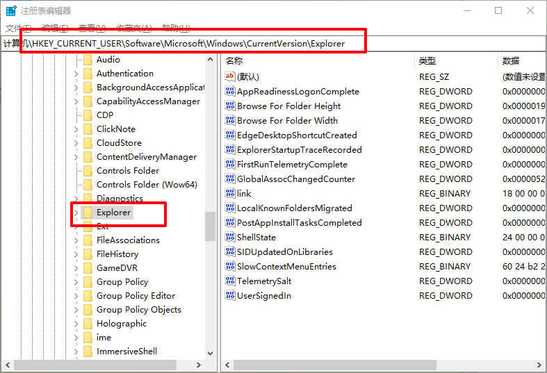 【HKEY_CURRENT_USER\SOFTWARE\Microsoft\Windows\CurrentVersion\Explorer】