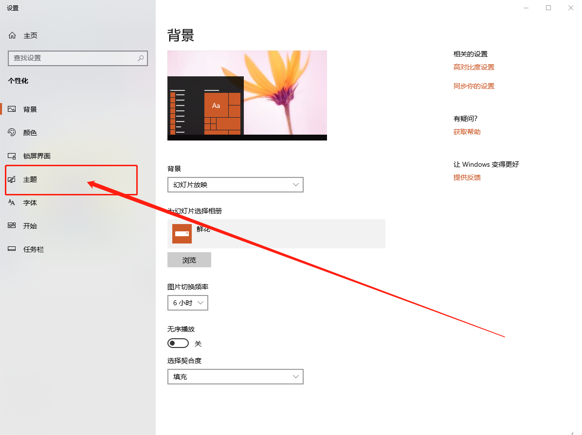 2、然后,在個(gè)性化設(shè)置窗口中點(diǎn)擊【主題】;