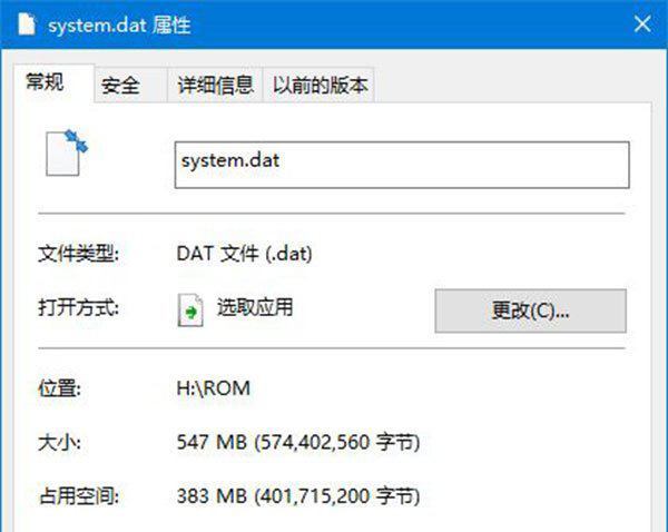 6、再次右鍵該文件進入屬性頁面,可以看到文件大小依然是547MB,但是占用空間已經(jīng)減小為383MB。