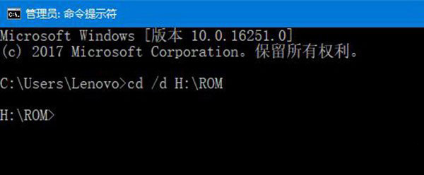 11、如果需要解壓一個文件夾的子文件夾下的所有文件,同樣假設(shè)要解壓經(jīng)過壓縮的H:\ROM下的子文件夾里的所有文件,則可以將工作目錄切換到H:\ROM,輸入命令如下【cd /d H:\ROM】