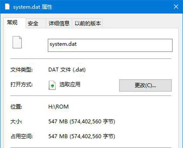 3、鼠標(biāo)右鍵該文件,進入屬性頁面,可以看到文件大小是547MB,占用空間547MB。