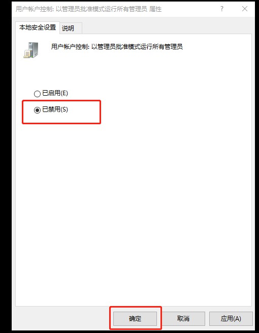 3、在右側(cè)找到并雙擊打開【用戶賬戶控制:以管理員批準(zhǔn)模式運(yùn)行所有管理員】,選擇【已禁用】點(diǎn)擊確定;