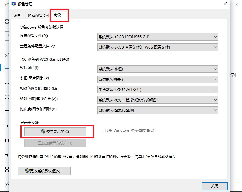 4、在彈出的界面中,點擊【校準顯示器】,即可改善顯示器的顏色
