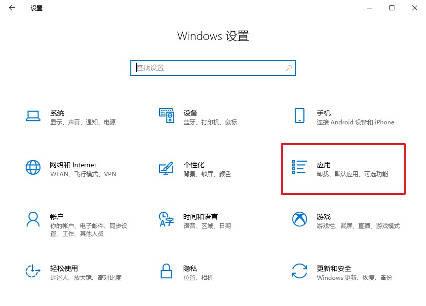 1、 同時(shí)按住“win+i”打開設(shè)置頁面,點(diǎn)擊“應(yīng)用”