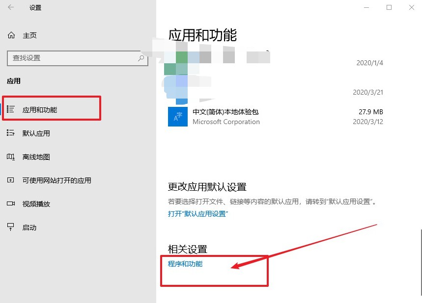 2、 然后,在應(yīng)用和功能選項(xiàng)卡中,在右側(cè)下滑找到并點(diǎn)擊“程序和功能”
