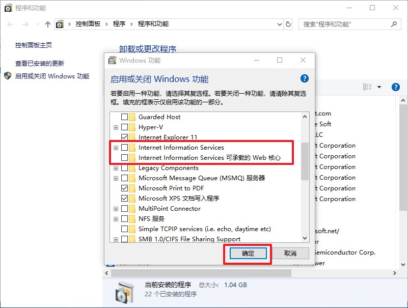 注意:WEB服務(wù)器管理工具IIS是Win10系統(tǒng)自帶的,以方便用戶架設(shè)個(gè)人服務(wù)器和調(diào)式程序,不需要的用戶可以關(guān)閉。