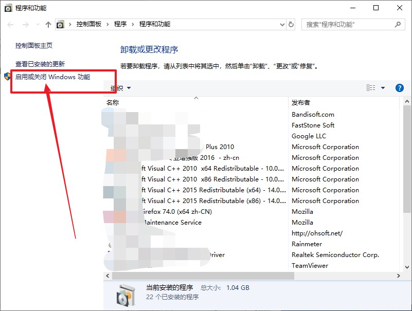 3、 進(jìn)入程序和功能的頁面后,點(diǎn)擊“啟用或關(guān)閉Windows功能”