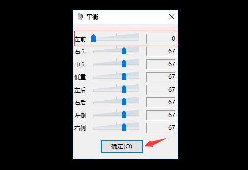 4、將【左前】音量設(shè)置滑塊拖到0,然后點擊【確定】即可,應(yīng)該就能聽到原唱和伴奏了;