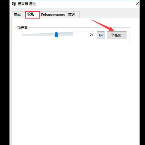 3、在屬性窗口中,切換到【級別】頁簽,然后點擊【平衡】;