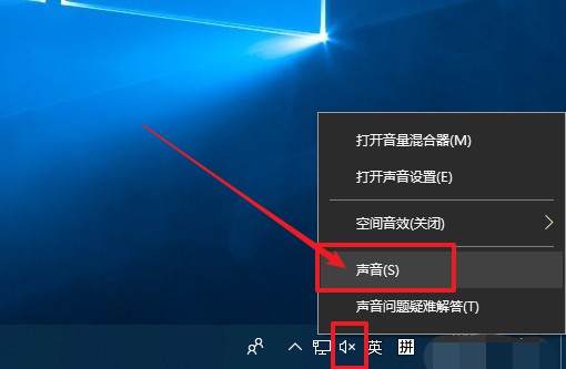 1、右擊音量圖標(biāo),在彈出的菜單中選擇【聲音】;