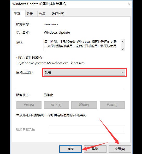 6、在里面雙擊打開“Windows Update”,將其啟動類型修改為【禁用】,單擊應(yīng)用并確定即可。